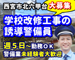 ≪西宮市北六甲台≫学校の改修工事による工事車両と歩行者誘導警備|週5日~OK|朝8時~夕方17時|正社員採用