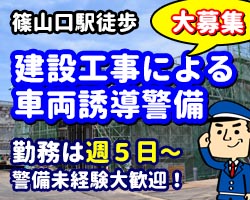≪篠山口駅≫建設工事による工事車両と歩行者誘導警備|週5日~OK|朝8時~夕方17時|正社員採用